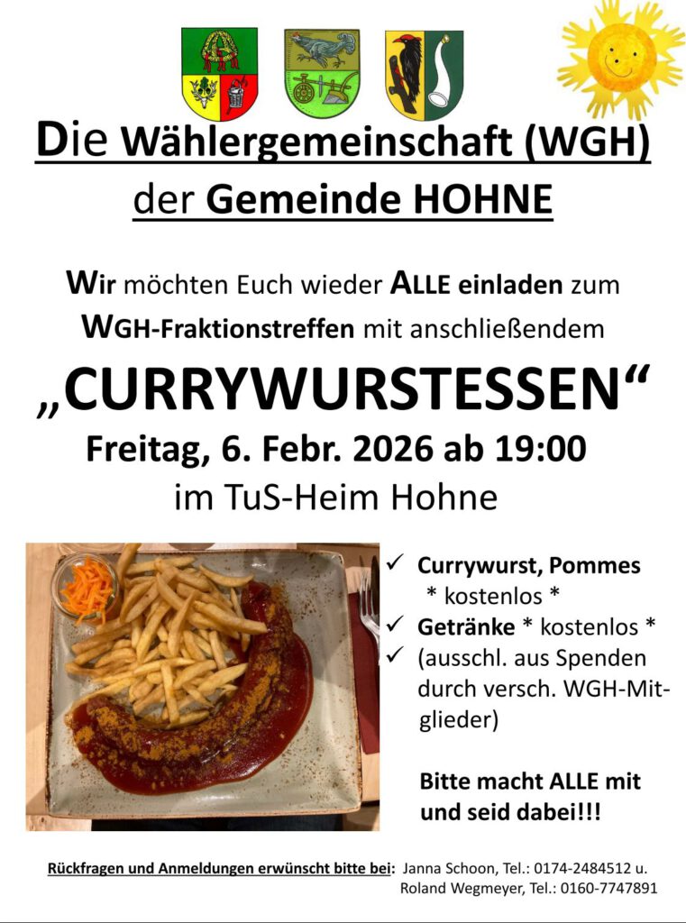 Wie gewohnt zu dieser Zeit nachfolgend unser Infoflyer von den kommunalpolitischen Ereignissen in unserer Gemeinde Hohne aus dem vergangenen Jahr 2023.